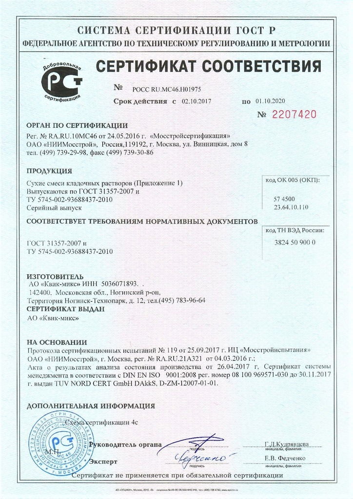 Подтвержденное сертификатами и действующими ГОСТ