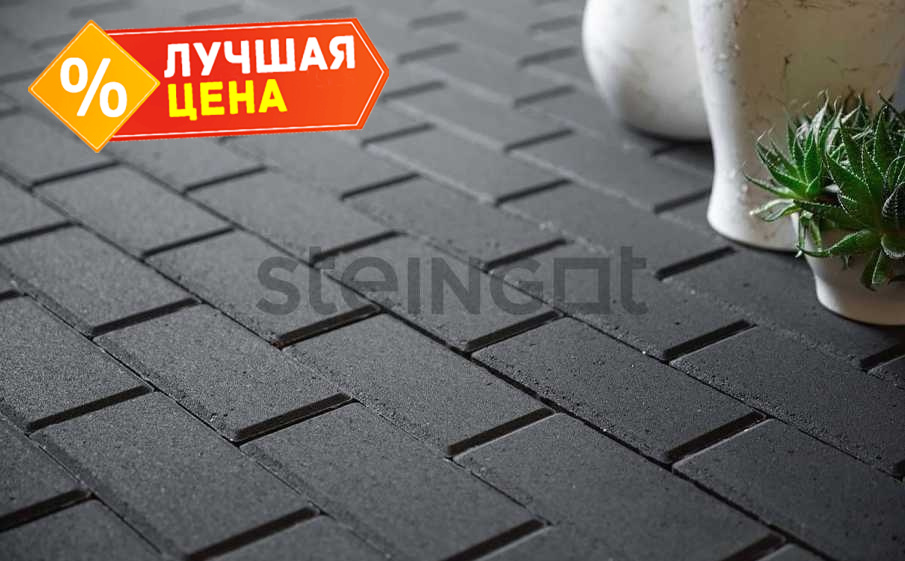 Плитка тротуарная Steingot Моно, Прямоугольник, фаска 5х5, черный, 200х100х60 мм