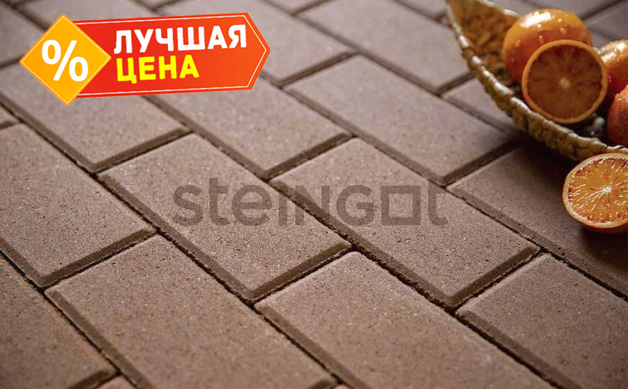 Плитка тротуарная Steingot Моно, Прямоугольник, фаска 5х5, коричневый, 200х100х60 мм